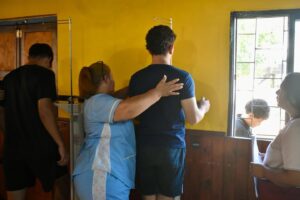 El dispositivo de atención está organizado en etapas: en una primera instancia intervienen agentes sanitarios y personal de enfermería, quienes revisan la documentación, completan las fichas y verifican el estado del calendario de vacunación. Luego, los estudiantes son derivados al área médica para la evaluación clínica correspondiente.