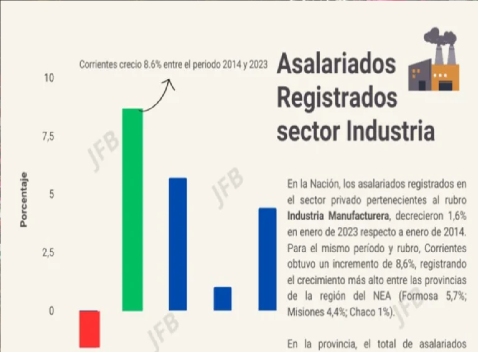 La provincia de Corrientes registró el incremento más alto del NEA respecto a los trabajadores asalariados registrados del sector industrial, según se desprende de un informe realizado por el Gobierno provincial.