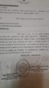 Por Urgente Santo Tome 29/03/2021 Fuentes judiciales confirmaron a www.urgentesantotome.com que en el día de hoy declaro ante la justicia santotomeña la ciudadana misionera, que estuvo alojada en el centro de aislamiento local, y que luego denunció malos tratos por parte de las autoridades locales. Se trata de Celia Ayala, que es la ciudadana de la ciudad de Posadas Misiones que estuvo alojada en el Centro de Aislamiento de Santo Tomè. Ayala fue denunciada por el Hospital San Juan Bautista por violar el art 205 del CP que prevé sanciones para quien viola las normas de aislamiento y que genera polémica. Luego de ser dada de alta, dió a conocer detalles de cómo fue tratada en el predio que acondicionó el municipio para refugiar a los infectados por covid en esta localidad. Entre criticas y polémicas Ayala y su ex pareja fueron los primeros ciudadanos que concurrieron al lugar, que después quedó en desuso. La ciudadana misionera había denunciado que en el Centro de Aislamiento «Baila Morena» no tenia las condiciones necesarias para afrontar la cuarentena, no había limpieza, no había una guardia permanente y en varias oportunidades le cerraban con llave el edificio entre otras cosas. Consultada por este portal, tras prestar declaración en el juzgado de instrucción local Ayala afirmó : » Esta denuncia del Hospital es una vergüenza, a mi me tuvieron mal en ese lugar, yo soy la que tenia que denunciar, pero cuando pase todo esto voy a ir hasta las últimas consecuencias». Ampliaremos