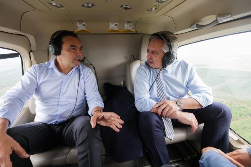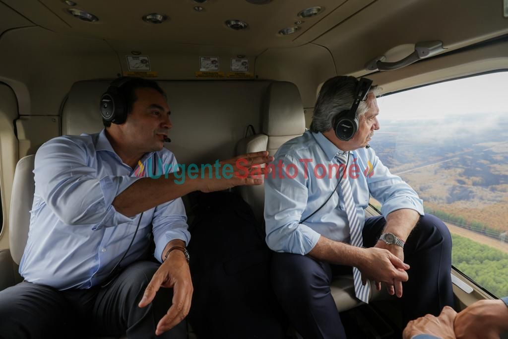 Por Urgente Santo Tomé 25/02/2022 El presidente Alberto Fernandez se encuentra realizando un recorrido en helicóptero las principales zonas afectadas por los incendios en la provincias de Corrientes. Lo hace acompañado por el gobernador Gustavo Valdes, quien le informa al primer mandatario nacional cuales son las áreas más sensibles por la emergencia. En horas del mediodía Valdes con el presidente partieron desde la ciudad de posadas en la provincia de misiones y partieron rumbo a la localidad de Santo Tomé, donde concretaron un recorrido aéreo por sobre las zonas mas impactadas por el fuego en esta comuna. Como guia, Valdes le describio a Alberto Fernandez cuales eran los sectores de esta localidad como paraje Galarza, Cuay Grande etc, como así también lo llevó a recorrer parte de la costa con el rió Uruguay, luego se trasladaron a zonas de ituzaingo, para después sobrevolar parte de los Esteros del Ibera. Ampliaremos