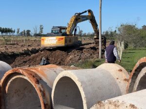 Contó además que el colapso se daba habitualmente en el acceso principal a La Curtiembre, continuación de la avenida Perkins Hidalgo. “Ahí tenemos 800 metros desde la ruta 121 hasta esa esquina, y unos 100 metros antes, el agua desbordaba y pasaba por arriba del camino, impidiendo el cruce de vehículos y motos, y eso ya era un problema por lo que me cuenta la gente desde hace 30 o más años. Entonces se está haciendo, paralelo a la ruta 121, que va a la aduana, se hizo una acequia que arranca a la altura de la Escuela del puerto Hormiguero, y continúa hasta el acceso del Indio. Esta agua se conduce hasta un lugar, que es más bajo, y de ahí se saca perpendicular al sur para llegar al cauce del arroyo Curtiembre. Ahora estaríamos canalizando y tendríamos ya la conexión de esa esquina con el arroyo. Hay un tramo que nos está quedando pendiente, estamos esperando los tubos, pero esto ya da otro panorama. Una vez que estén colocados los caños de 1.500 mm, no van a tener más problemas”, dijo.