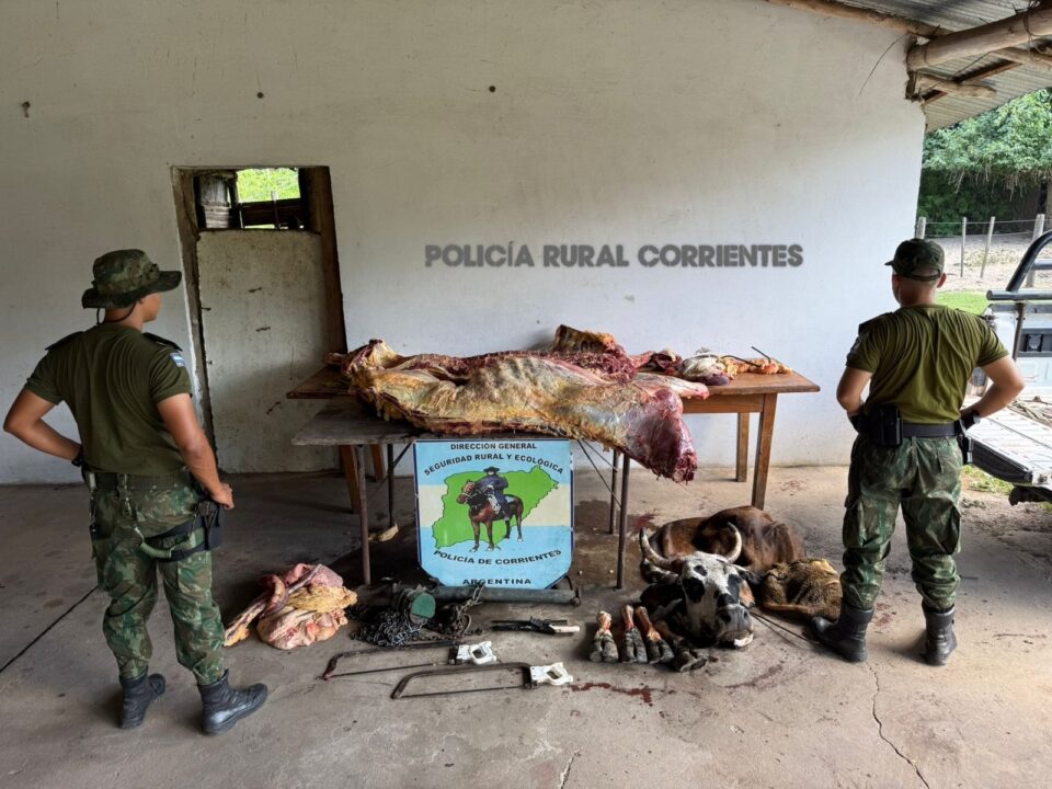 El procedimiento fue realizado por los efectivos, en inmediaciones de la Ruta Nacional N° 12 a la altura del kilómetro 1000 aproximadamente, donde luego de diversas tareas investigativas, sorprendieron a una faena clandestina, procediendo en el lugar, al secuestro de distintos cortes de carne, cuero, cuchillos, aparejo y serrucho, además, la aprehensión de un hombre mayor de edad.