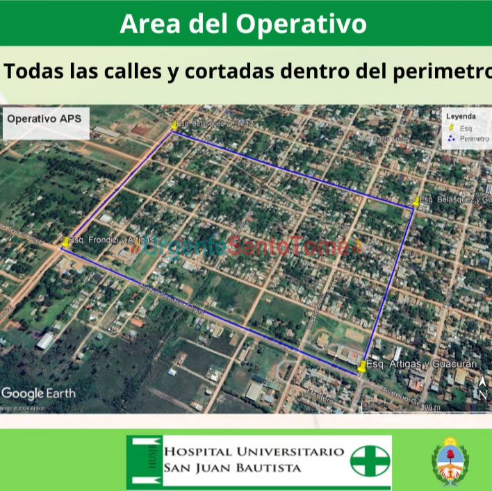 Por Urgente Santo Tomé 07/04/2024 Fuentes del Hospital San Juan Bautista y del Ministerio de Salud de la provincia de Corrientes confirmaron a Urgente que el próximo lunes 08/04 se llevara a cabo un amplio dispositivo para combatir el flagelo del dengue en esta localidad, que es una de las más afectadas en la provincia. Según precisaron las mismas, la acción se realizará en en un área determinada de la localidad que corresponde a un perímetro trazado y que involucran a varias calles de Santo Tome: Esquina Frondizi-Artigas, esquina Belasquez -Frondizi, esquina Belasquez – Guacurari y esquina Artigas y Guacurari. En esta zona los agentes sanitarios harán visitas domiciliarias , búsquedas de febriles , bloqueos larvarios y bloqueo focal acompañados por miembros de las fuerzas de seguridad . Además , luego del trabajo que será desplegado por los especialistas pasaran los dispositivos del sector de medio ambiente a recoger los descacharrizados y más tarde toda la zona será fumigada. Ampliaremos