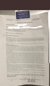 Cédula de citación a uno de los participantes de la fiesta