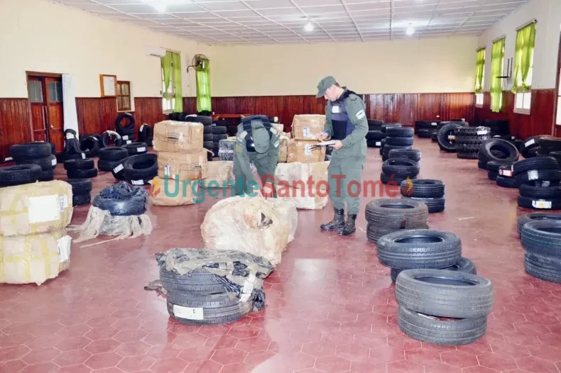Por Urgente Santo Tomé 27/11/2025 Personal perteneciente al Escuadrón Santo Tomé dieron cumplimiento a la Manda Judicial que ordenaba la apertura de 39 encomiendas dentro de las cuales se encontraban acondicionados 273 neumáticos de distintos rodados y medidas, de origen extranjero y que carecían del aval aduanero correspondiente.