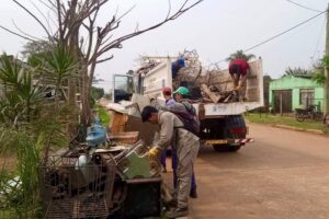 Los agentes de salud y promotores ambientales recorren casa por casa sensibilizando a la población para que elimine los posibles criaderos de mosquitos, mientras al instante las maquinarias municipales de Medio Ambiente recorren las calles levantando los elementos extraídos.
