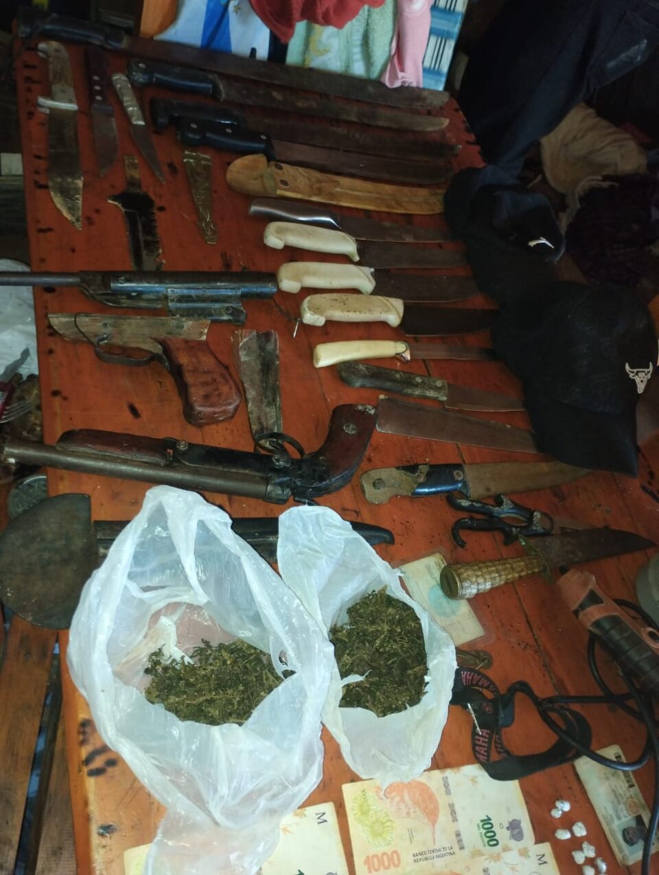 En la casa personal de la fuerzas de seguridad descubrieron más de 5 kg de marihuana y más de 14 envoltorios de crack para ser comercializados . Por otra parte , los investigadores secuestraron varias armas de fuego , armas blancas y dinero en efectivo que servirán como material probatorio en la causa. Cómo resultado del operativo se procedió a la detención de una persona que estará a disposición de la justicia. Ampliaremos