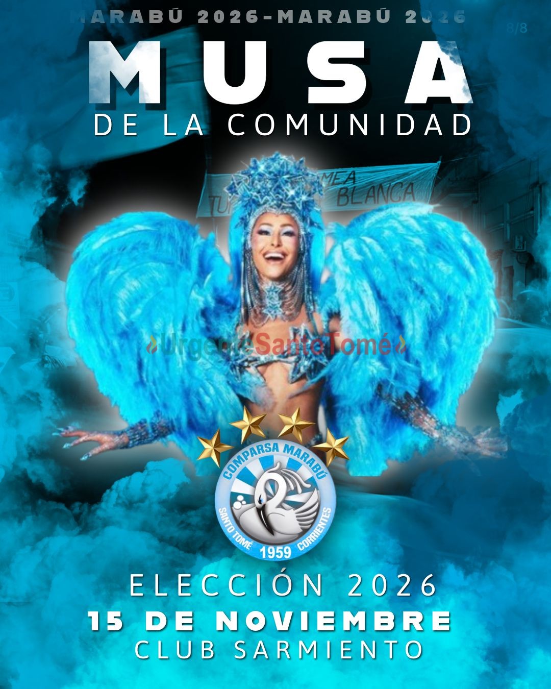 Por Urgente Santo Tomé 13/11/2025Este sábado 15 de noviembre, en Instalaciones del Club Sarmiento, Institución que la cobijó desde su fundación allá por el año 1959, Marabú acelera en la recta final rumbo a la edición del carnaval 2026. A partir de las 21.30 hs además de la presentación artísticas de distintas figuras y bloques de la Comparsa como ser taller de samba, baianas y batería Aplanadora, uno de los atractivos centrales de la noche será la FINAL de la elección del samba enredo que presentará en la avenida la comparsa Tetracampeona.