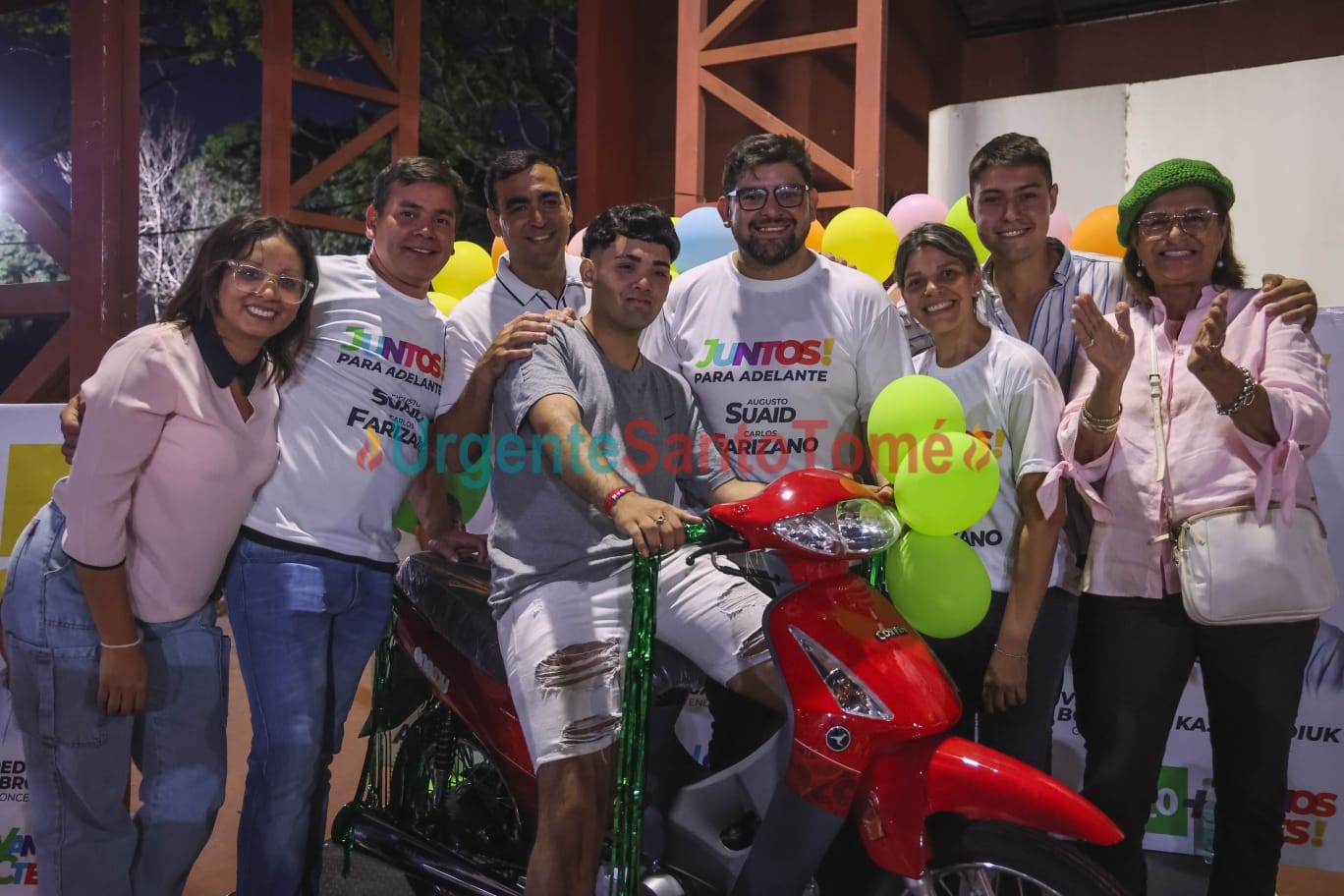 Uno de los ganadores de premios, llevándose una moto 110 Cc. fue Rodrigo Alcaraz, quien se acercó al predio junto a su novia, su mamá, la abuela y un tío. Emocionado hasta las lágrimas agradeció a los organizadores y destacó la buena gestión de Suaid al frente del municipio.