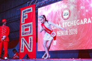 El evento comenzó con la presentación del pabellón rojo y blanco, portado por los ganadores 2025, la porta bandera Carla Almada y el mestre de sala Osmar Ferreyra. Se destacó el rol del grupo “Corazón Fonfonero”, actual impulsor del proyecto 2026 durante una etapa de transición institucional, enfatizando el trabajo colaborativo y la conformación de comités específicos de comparsa, batería, carros, área legal, eventos e infantil.