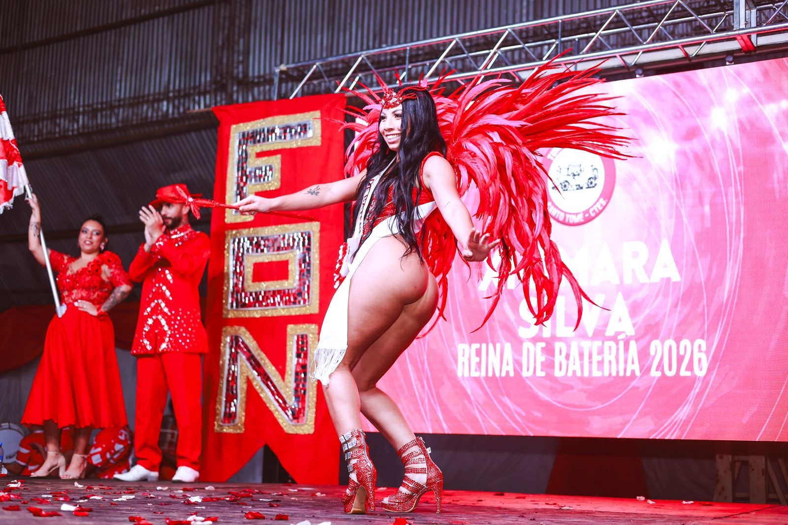 El evento comenzó con la presentación del pabellón rojo y blanco, portado por los ganadores 2025, la porta bandera Carla Almada y el mestre de sala Osmar Ferreyra. Se destacó el rol del grupo “Corazón Fonfonero”, actual impulsor del proyecto 2026 durante una etapa de transición institucional, enfatizando el trabajo colaborativo y la conformación de comités específicos de comparsa, batería, carros, área legal, eventos e infantil.