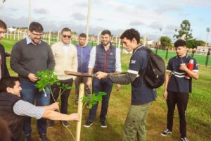 La plantación masiva —realizada en junio de 2025, en el marco del Día Mundial del Ambiente— hoy vuelve a ser reconocida por su impacto ambiental y educativo. La jornada reunió a estudiantes de los últimos años del nivel secundario, quienes junto al Municipio plantaron especies nativas en el Complejo Polideportivo Romeo Maciel, los nuevos bulevares y diversos espacios cercanos a instituciones educativas.