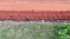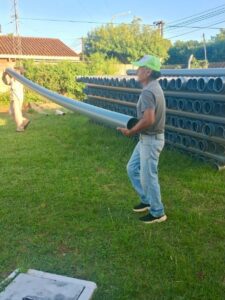 Se trata de 1.800 metros de cañería de 160 mm llevan servicio a más de 100 familias, desde Av. Frondizi hasta Ruta Nacional 14, con 900 metros ya ejecutados.