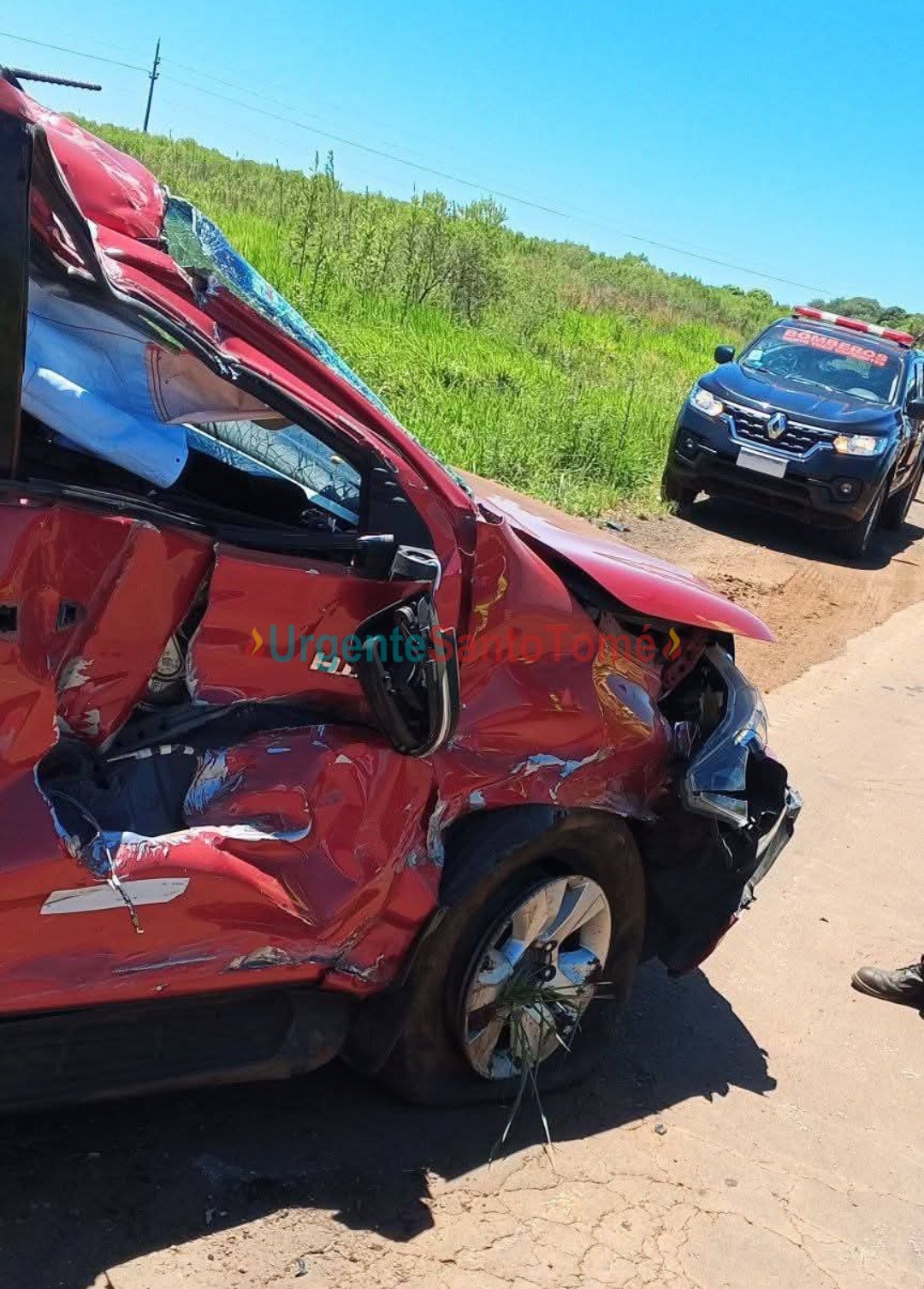 Por Urgente Santo Tomé 04/01/2025 Fuentes de Bomberos Voluntarios de Santo Tomé revelaron a este portal que en la mañana de este domingo se produjo un accidente en la denominada zona del Empalme de esta localidad, cuando un vehículo despistó de la ruta y volcó.