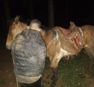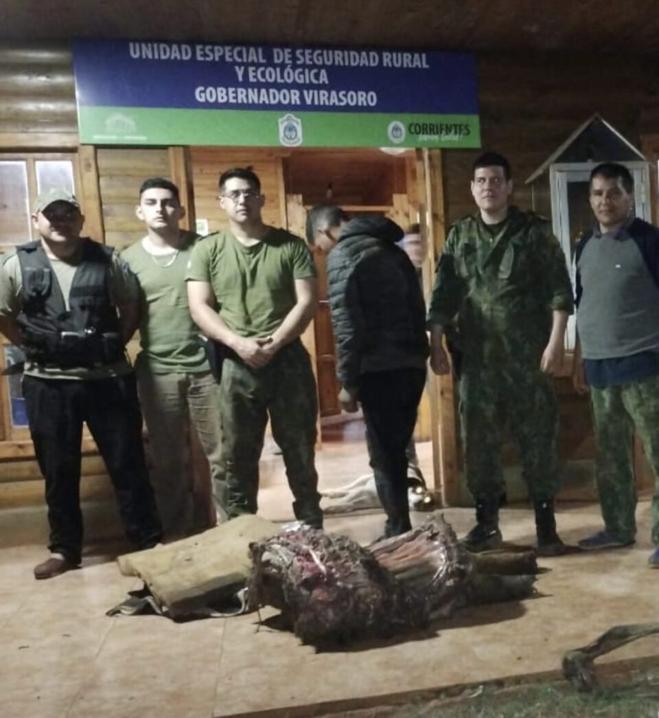 Se secuestraron una media res, un caballo y el arma blanca utilizada en la faena. El establecimiento «Villa Corina» resultó damnificado en este incidente.